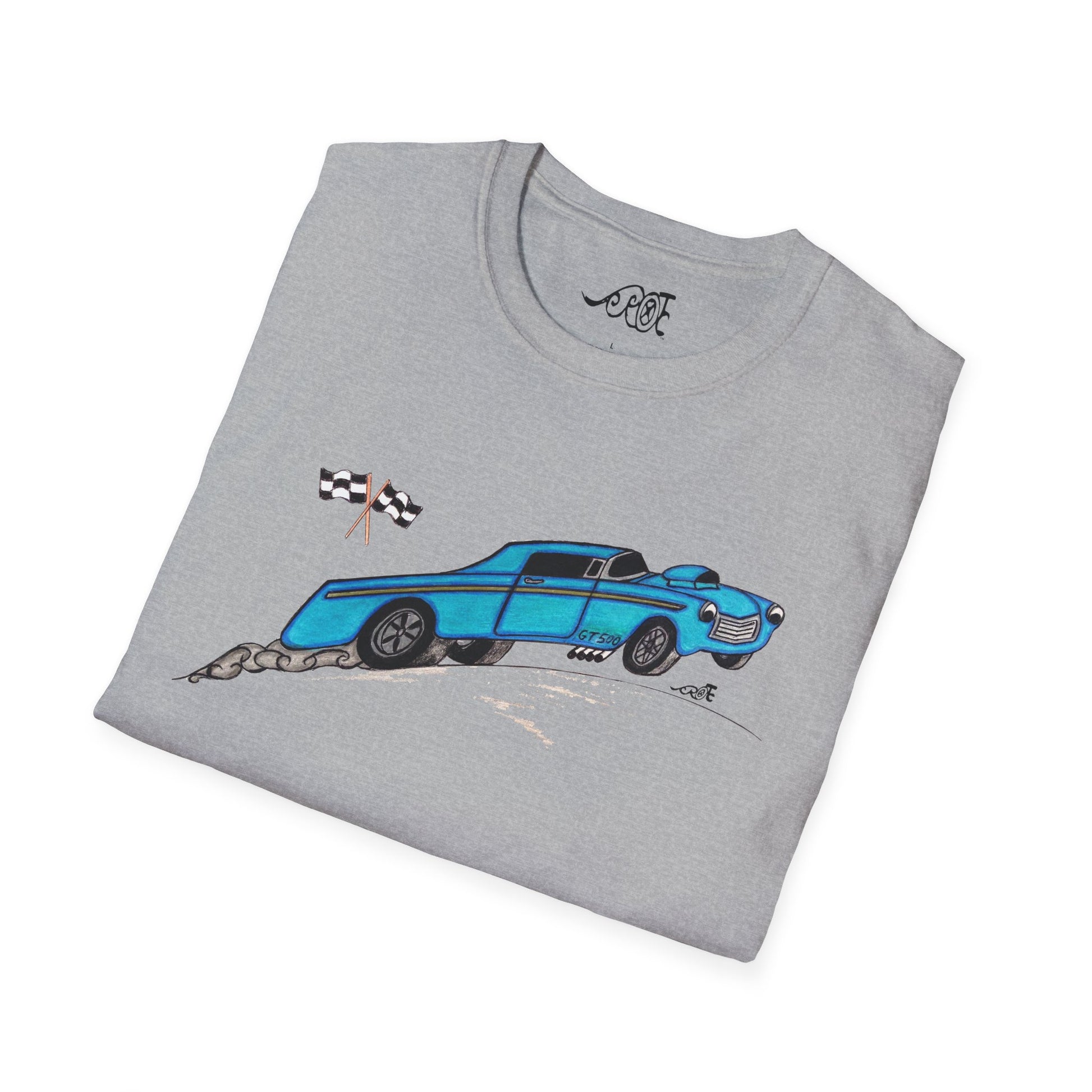 Born to blast off. The Blue GT500 Softstyle Tee captures a hand-drawn monster mid-launch—smoking tires, bold side stripes, side pipes firing, and that unmistakable GT500 power badge. Finished in a punchy blue with golden accents, this design is all about speed, motion, and muscle, brought to life with signature sketchbook style.