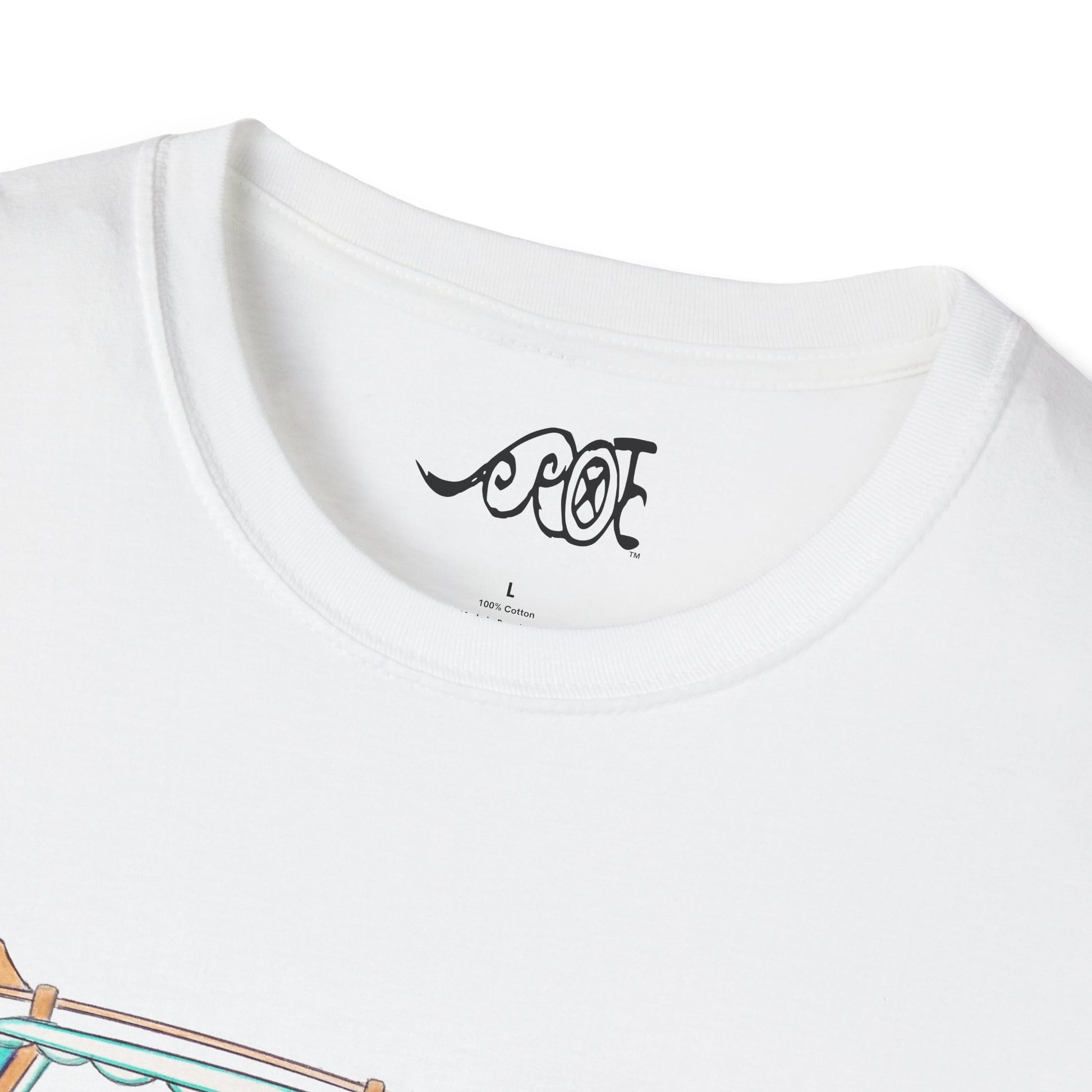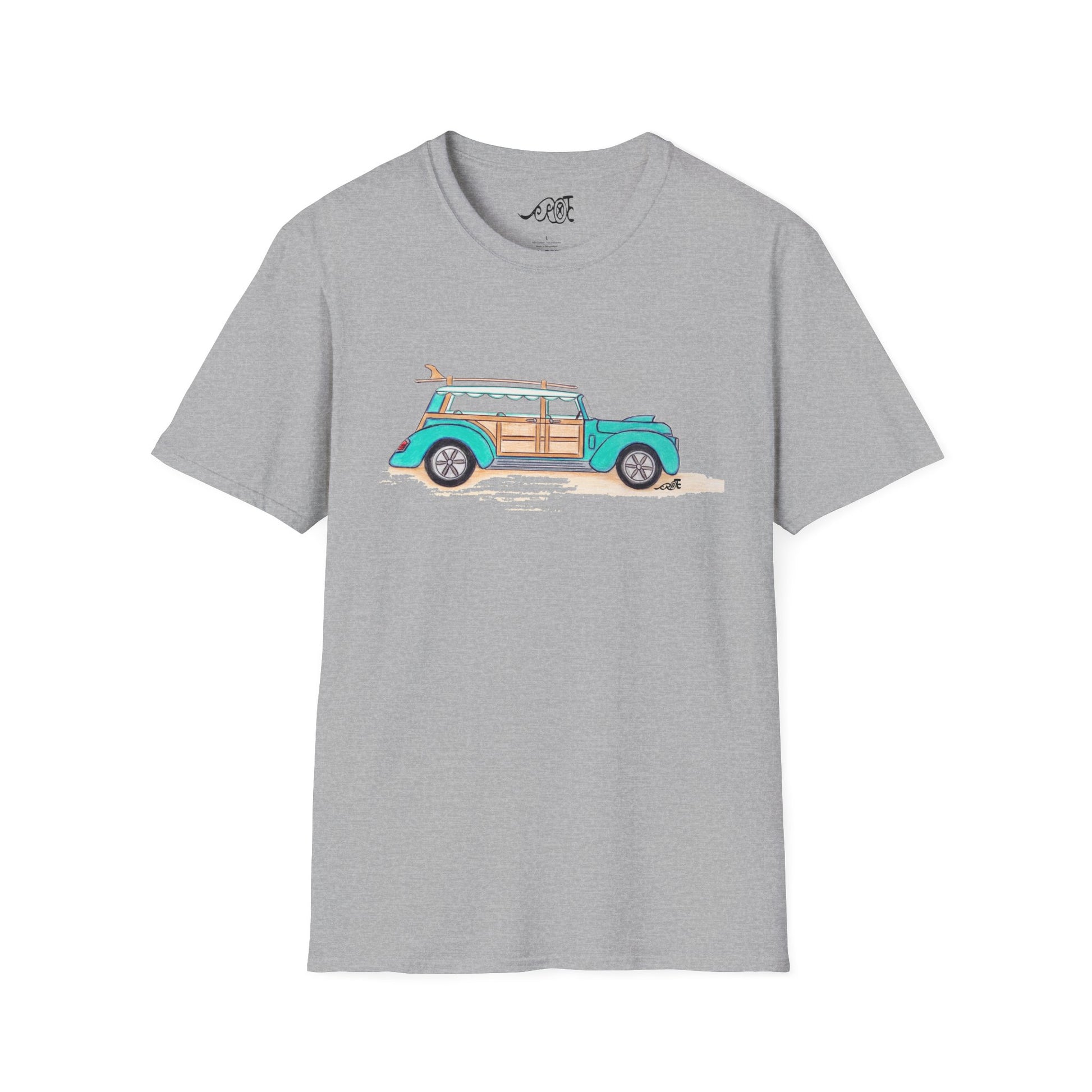 Catch waves and good vibes in the Boardwalk Cruiser Softstyle Tee — your go-to for coastal chill and vintage cool. Featuring a hand-drawn turquoise woodie wagon with a surfboard on top and retro beach-day details, this shirt celebrates endless summers, sandy roads, and the freedom of the open shoreline.