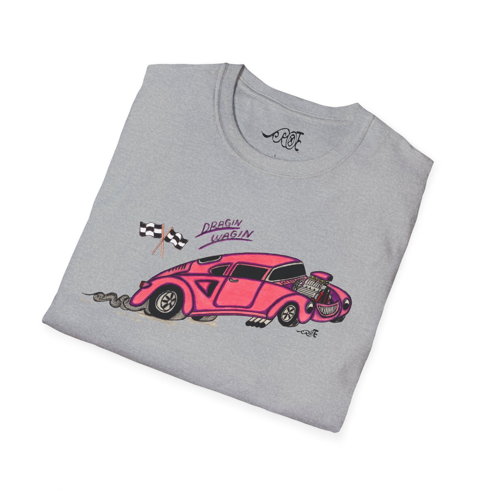 Buckle up. The Dragin’ Wagin’ Softstyle Tee is all about horsepower, humor, and hot pink attitude. Featuring the wildest wagon to ever light up the drag strip, this unisex tee brings soft comfort and loud personality to your everyday gear.