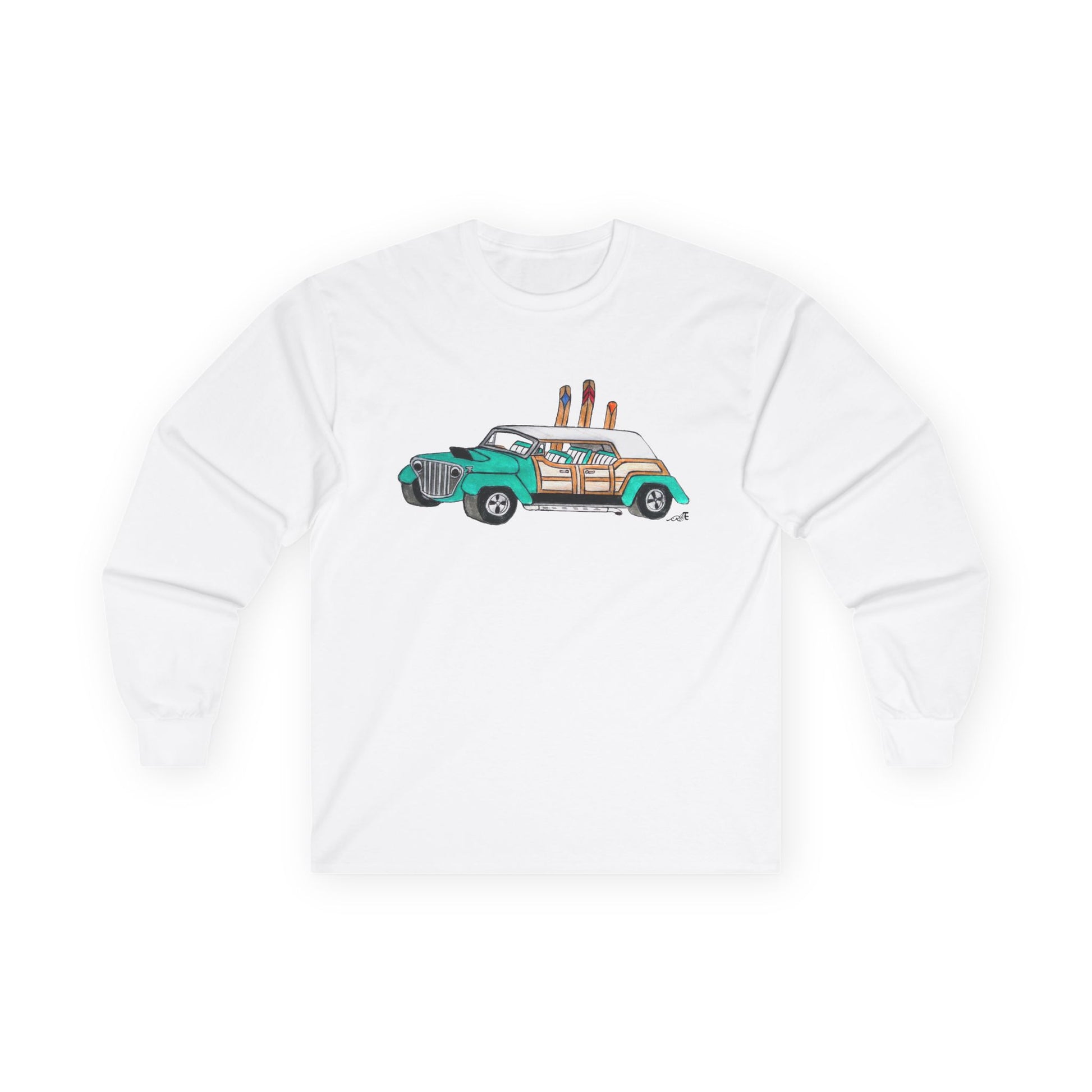 From grease-stained floors to salt-kissed shores, the Garage to Shore Softstyle Long Sleeve Tee is built for the ones who live to ride—and vibe. Featuring a hand-drawn custom woody wagon in bold turquoise, this design celebrates that perfect mix of horsepower and ocean breeze.